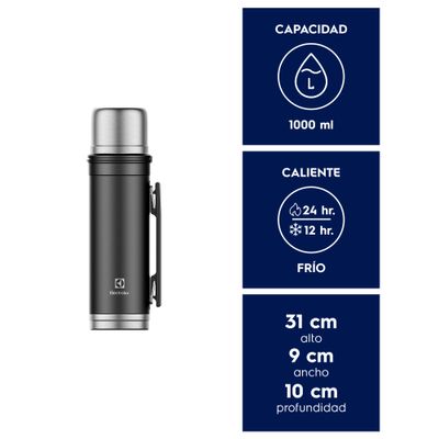 *Pruebas realizadas en laboratorio, con el termo totalmente lleno, considerando hasta 10 °C para temperatura fría y por encima de 60 °C para temperatura caliente.