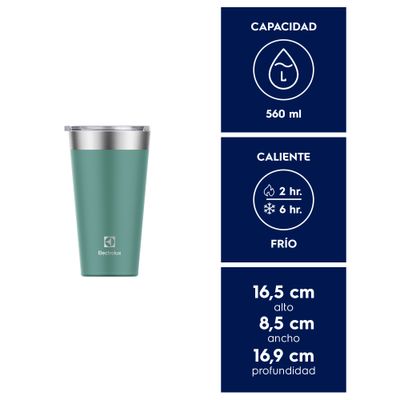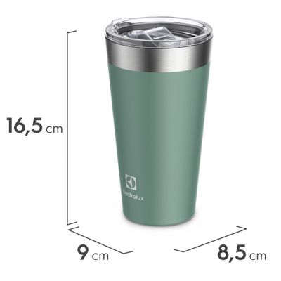 El Vaso Térmico Electrolux 560ml con Tapa Sense Verde es perfecto para quienes no renuncian a tener sus bebidas favoritas siempre a la temperatura deseada, manteniendo la comodidad y el estilo.